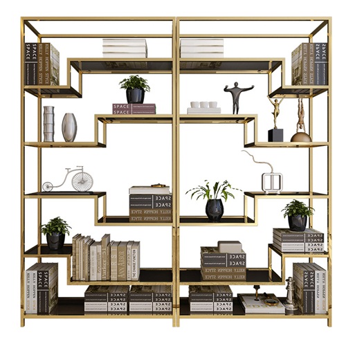 轻奢24k金不锈钢书柜定制_不锈钢书架生产加工厂图