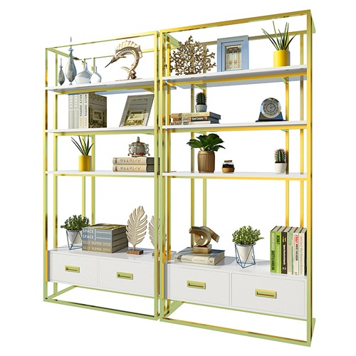 北欧香槟金不锈钢金属书架简约_不锈钢书架款式定制图