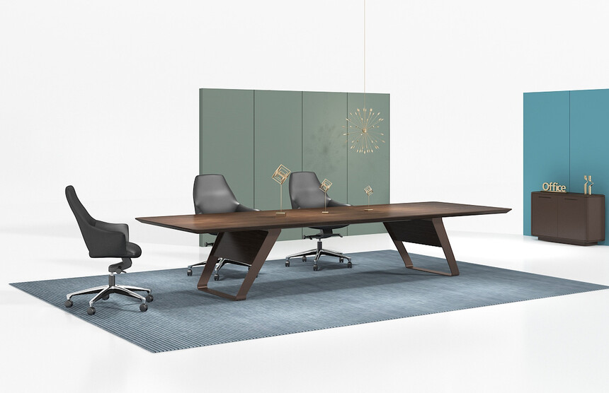 极致办公系列,秉承华旦的时尚优雅的品牌基因,以直线中穿插多维弧度的造型语意,将天然的半开放胡桃木纹与金属的质感有机组合,尽显原木风情与利落高效。