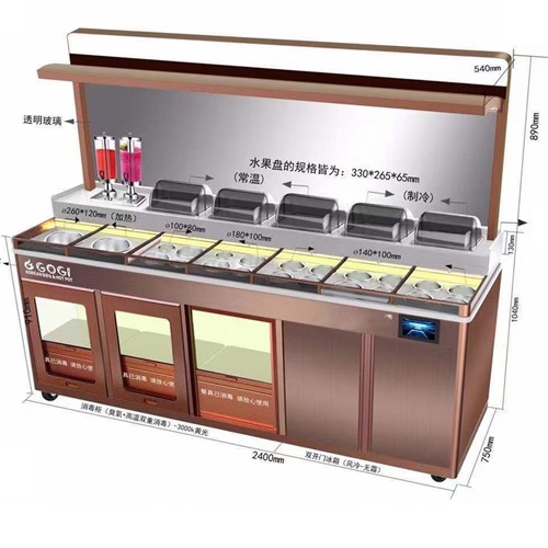以滑盖保鲜、风冷保鲜、高温+臭氧消毒功能,解决了酱料在常温下开放式存放、碗碟露天存放等食安隐患问题;运用强大的智能操控系统,让调料区管理更高效;支持多种功能、风格定制,打造餐企专属料台。