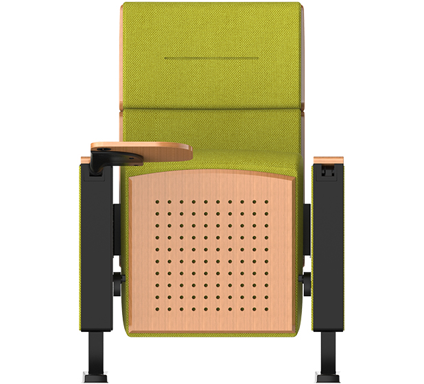 3.在保证观众舒适度的前提下,背垫高不超过1000mm,增加椅背板的声反射面积,改善座椅的吸声;座底板根据需要打吸音孔,使座椅的吸声量在不同的上座率尽可能保持一致。