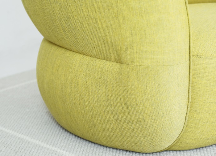 “豆锄三遍,荚生连串”,通过辛勤的劳动和努力,结出豆荚连成串,农作物需要勤奋劳作,同时注意细节和耕种技术,庄稼才会成长。豆荚沙发就如设计师精心设计的庄稼,只有注重设计细节才能有高品质的产品。豆荚沙发圆润、立体的滚边和内凹的背部形成了独特的豆荚形状,这种设计语言巧妙的展示出豆荚的经络,沙发整体不失豆荚鲜活嫩绿的生命力。同时,圆润厚实的靠背围绕着整个坐垫,能够完全贴合腰部和背部,为用户提供舒适的坐感。