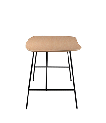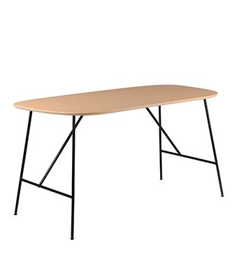 在画布上再现自己眼中的这个客观世界,不愿被束缚的绘画艺术给了设计师启发,从世间万物中汲取灵感,结合森川的见解,实现视觉与空间的双重满足。 自带艺术气息,不会过于喧嚣,也不至于过于内敛。 Bud的桌面线条柔美,形似豌豆,恰到好处的弧形环抱曲线,贴合人体线条,为使用者的身体延展提供空间,圆润的线条边角处理,配合细腻的木质纹理,营造和谐自洽的氛围,让功能兼顾美感。 Bud的桌腿仿佛是豆类生长出来的芽,设计的妙处在于提供承重的居然是几根的孱弱线条,设计师在H 形桌腿上增添双三角支撑,呈现力量与结构之美,精密连接让轻巧的线条感铁质结构也能提供稳固支持,水珠般脚垫加大受力面,整体看来更加干练,仿佛生长中的豌豆在不断积蓄中拥有破土的力量。