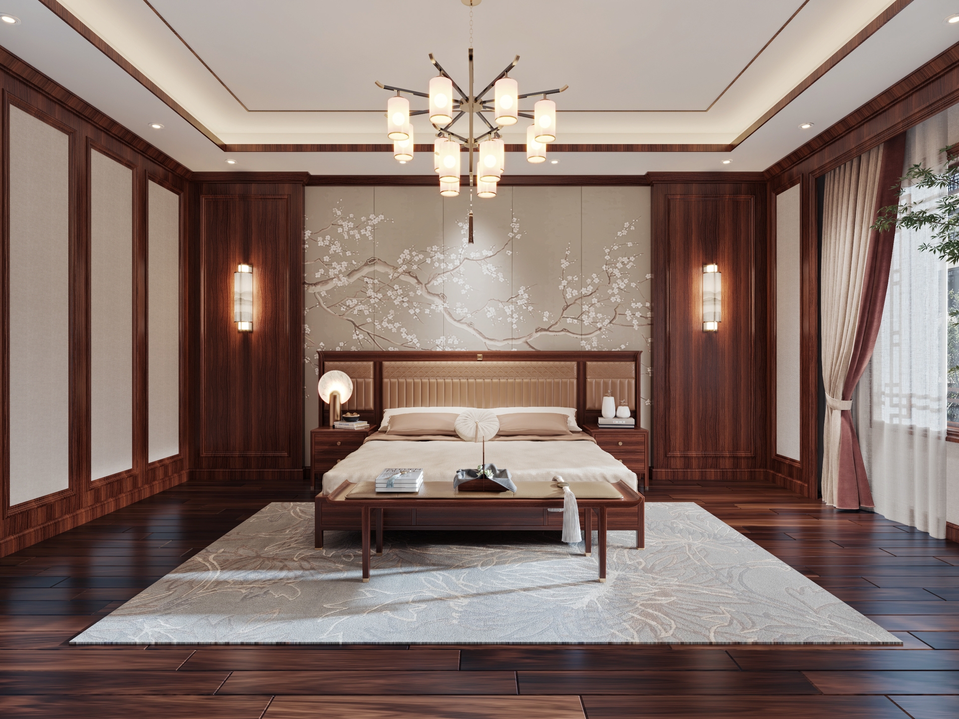 卧室则注重舒适与静谧,新中式床具以低调的木质纹理和简洁的雕刻展现温馨质感。配以素雅的窗帘和装饰,创造出休憩与思考的理想之所。